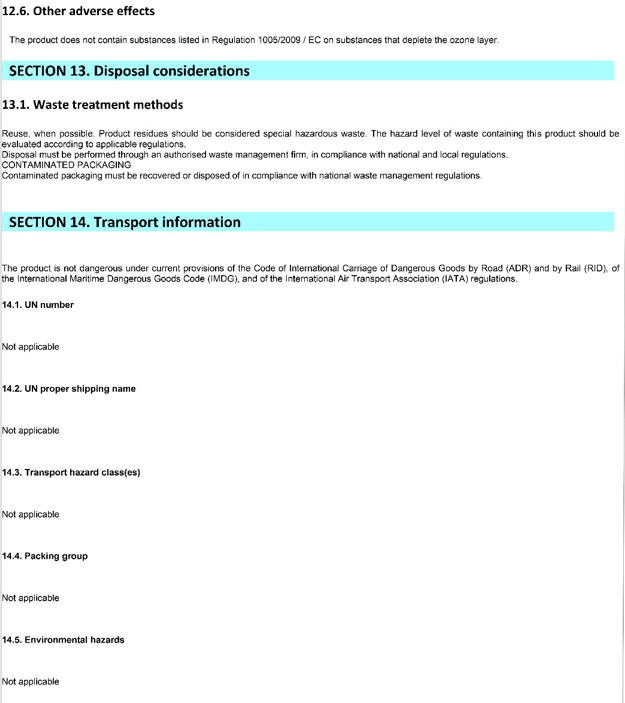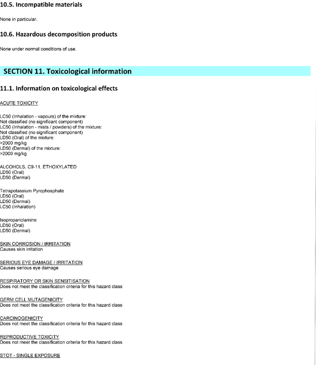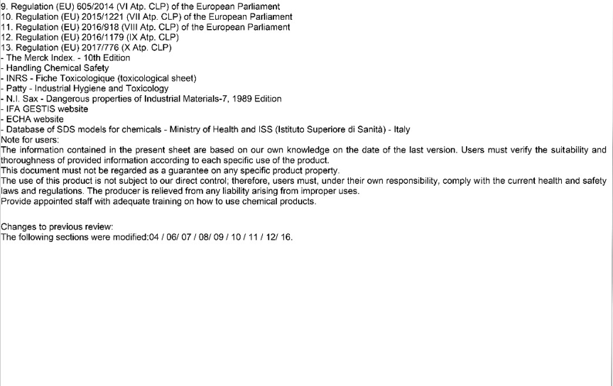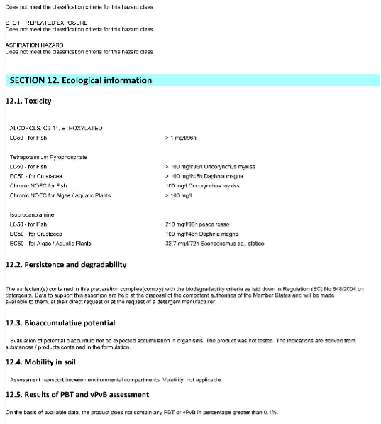 Any additional information concerning the risks for health and/or the environment are given in sections 11 and 12 of this sheet.