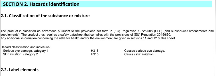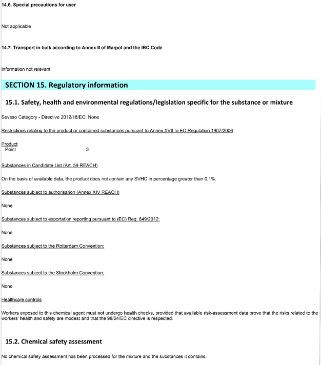 supplements). The product thus requires a safety datasheet that complies with the provisions of (EU) Regulation 2015/830.