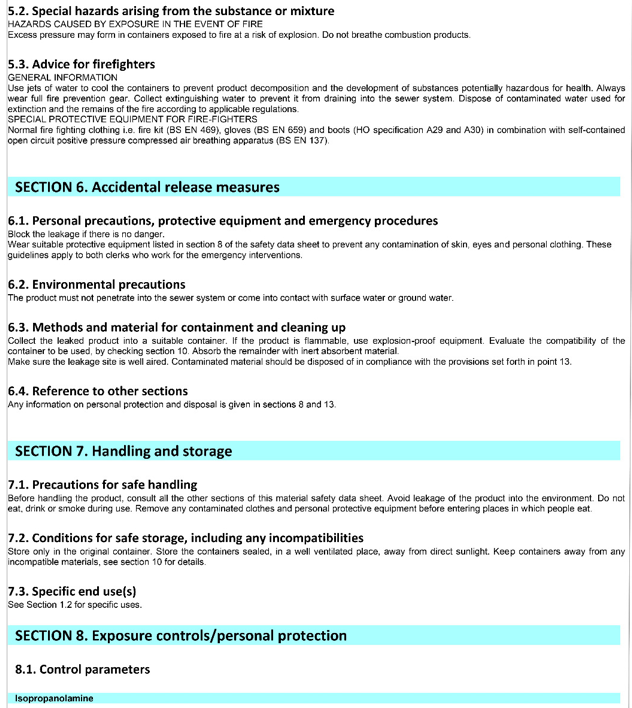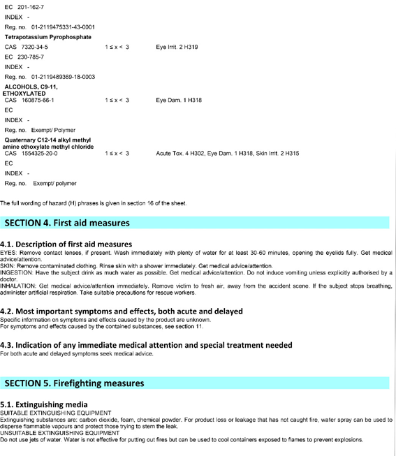 Cleaners for hars surfaces for Consumer.Uses Advised Against. Don't use for different uses from the recommended one.