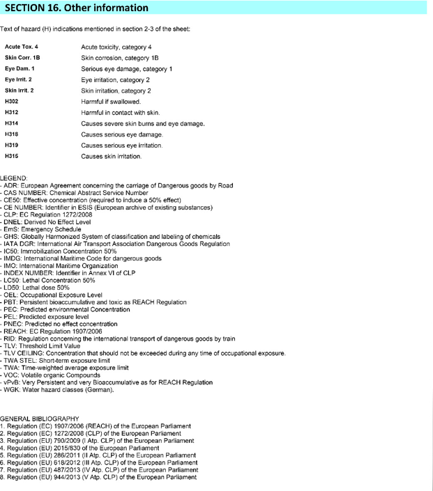 The product is classified as hazardous pursuant to the provisions set forth in (EC) Regulation 1272/2008 (CLP) (and subsequent amendments and